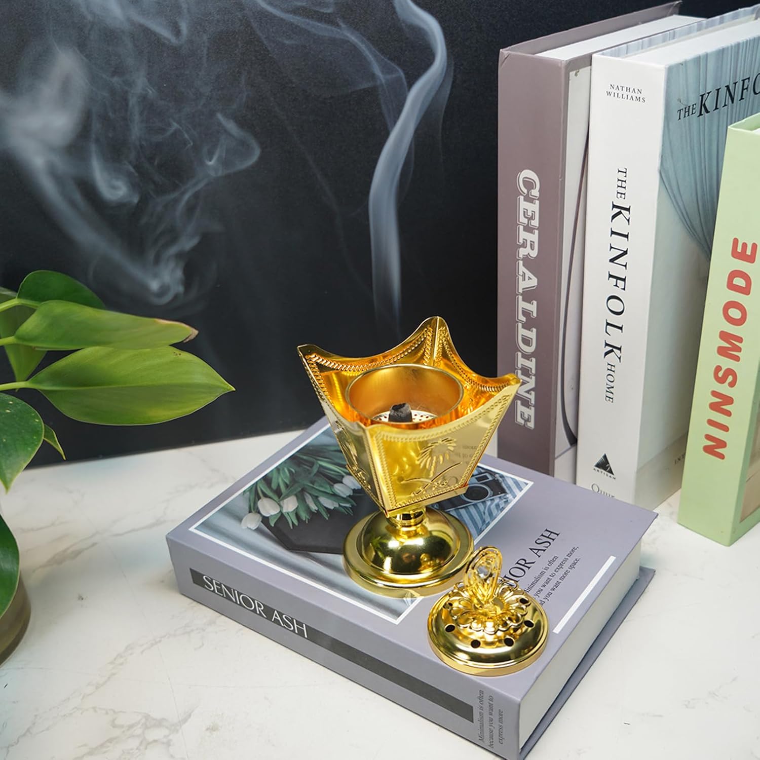 1: يسمح مبخر البخور بتصاعد الدخان اللطيف، حاملاً معه رائحة البخور، مما يخلق جواً من السلام والتأمل.
